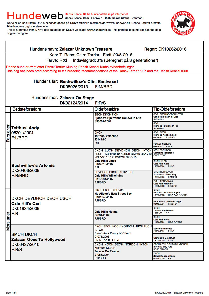 Other Zalazar Cairns Zalazar Unknown Treasure (Tesla) Zalazar Unknown Treasure (Bushwillow's Clint Eastwood - Zalazar On Stage) Født 20.5.2016 Opdr: Mette Sørum Ejer: Mette Sørum Tesla bor hos Charlotte & Brian